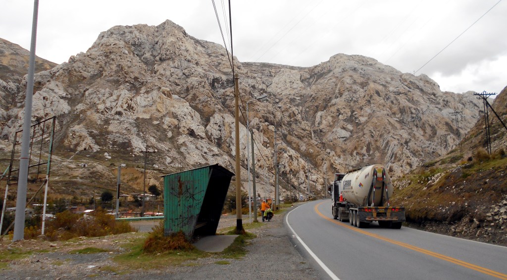 We woke up before five and got ready, but our efforts were rather futile as the road was already busy with trucks. So we stuck to the gravel roads as much as possible. After a while we had no option but to rejoin the highway, although by this stage it had developed a large shoulder and we enjoyed a fairly long downhill on it in the direction of La Oroya. As we began to approach this town, however, the traffic increased a lot and, as we entered a winding, narrow valley, the shoulder vanished completely. Suddenly we were stuck in a dangerous situation, with traffic flying around the blind corners at great speed and us having little space on the road. It proved too much for Dea, who became extremely distressed, pulling off the road and shaking with fear. It pained me so much to see her in such a state, just genuinely scared for her life. That wasn’t what this trip was supposed to be about. I sat her down and looked for a solution.