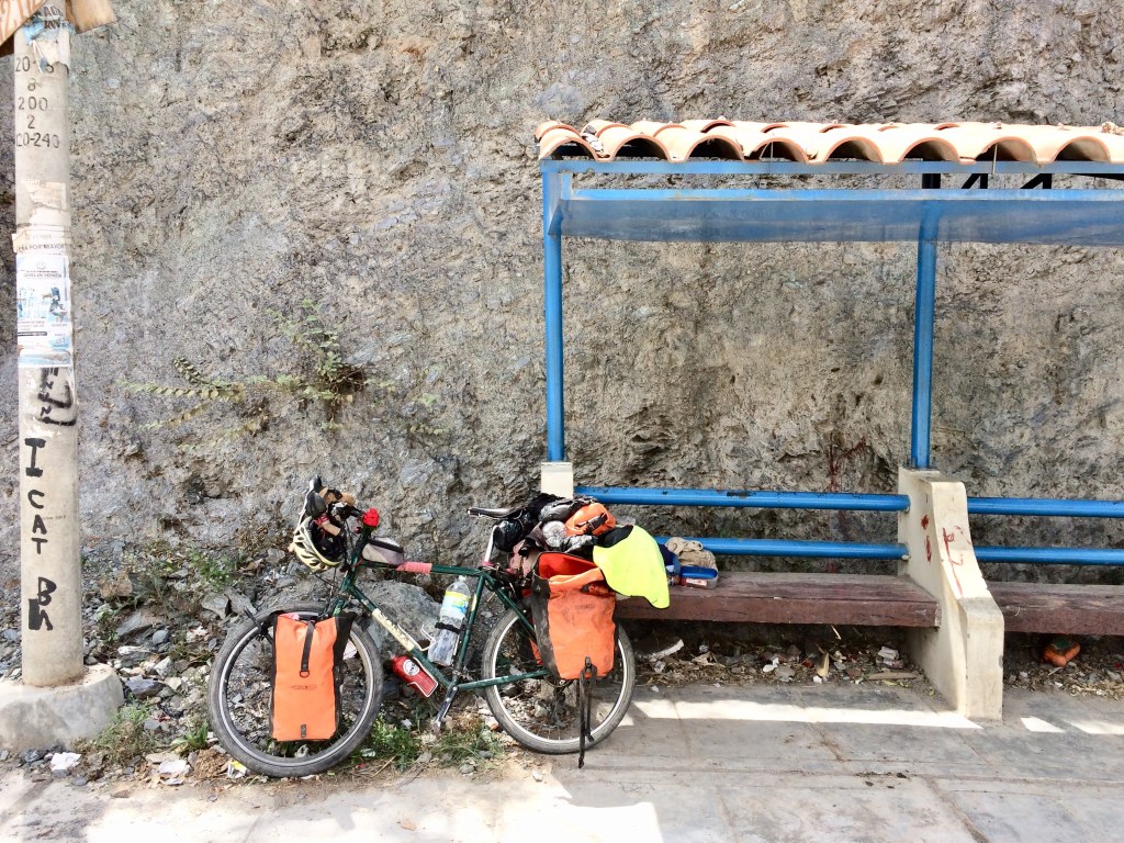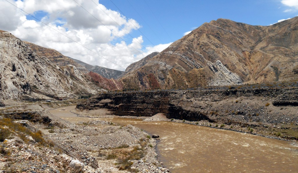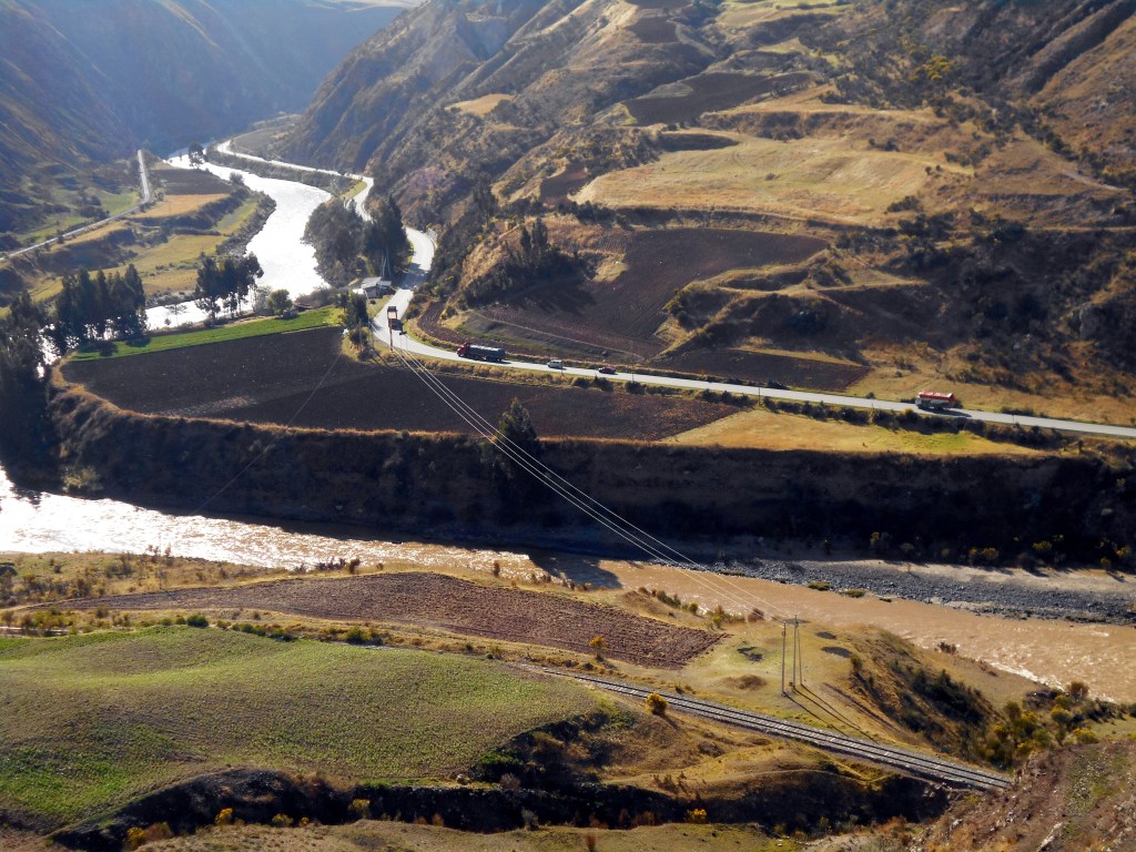 I was seriously considering whether or not we could push our bikes along the railway line that ran alongside us. We hadn’t seen any trains on it and bizarrely it seemed like the safest space in this narrow valley. But then I noticed that there was a footpath just starting up on the opposite side of the roadway, and decided that was probably a better place for pushing a bike. So we did that, and thankfully the path continued all the way into the mining town of La Oroya. Here we checked into a hotel and rested for the remainder of the day, trying to find a solution to our dilemma. There were gravel roads up in the mountains that would have almost no traffic on them, but Dea’s wrist meant we were reluctant to take them. So we did more research into the paved highways and found that they should have shoulders on them most of the way through the south of Peru, which was of course a great relief. There was just one section coming up on the next stretch where we could see there would be no shoulder at all and tight corners through a narrow valley, and this, of course, was something that concerned us.