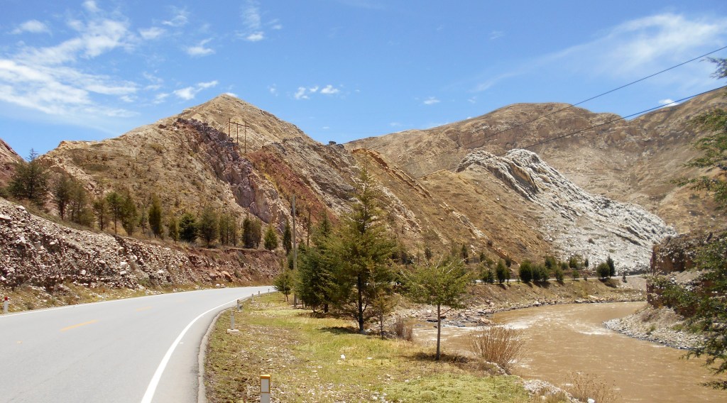 The next day was better. The road was wider, and took us through a stunning landscape where the mountains and cliffs of the valley came in a wide variety of colours, stripes of purple, red, orange, yellow and green. There was also a little less traffic, which was good because what traffic there was drove very badly, making risky overtakes and constantly taking corners on the wrong side of the road. I had never before seen anywhere where drivers took such risks, or had such an affinity for being on the wrong side of the road. I had also never before seen a stretch of road with so many roadside memorials alongside it, the correlation between these two things apparently lost on the maniacs behind the wheel. It was certainly enough to have us fearing the shoulderless section of road that was coming up, and we stopped early and made camp just before it, hoping to find the road quieter in the early morning. We set our alarms for 4:40 a.m.