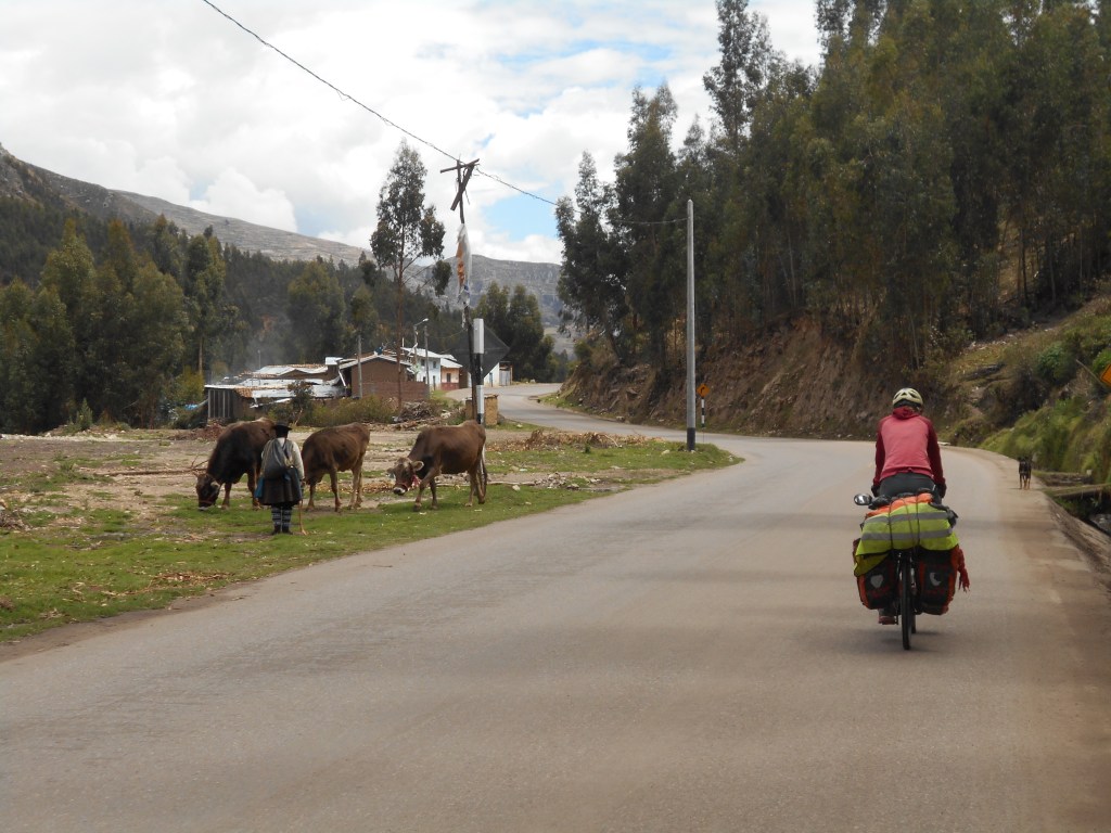 We had agreed to meet in a small village, La Quinua, at midday some 20 kilometres below the mountain pass of Cerro de Pasco, where he had spent the previous night. Again it was a short ride for me, and I was on my way too early, eager to get there. As I took a break halfway up by the river, that was now more a little stream, an old man came down from the mountain with his sheep. He came over to me, and I felt a short jolt of nervousness being a solo woman out there alone, but when he reached me and shook my hand I immediately felt safe, sure he only had good intentions. We had the usual conversation about what I was doing there, and he pointed out the house up by the stream where he had lived his whole life, a beautiful place and a simple, hard life I imagined. Despite the immense differences in our lives (and our languages) I sensed a genuine interest and understanding from this man too, and that was exactly what I was beginning to truly respect of the Peruvians. They were at once so bound to their place on earth and yet so curious and open to the foreigner like me, an admirable attitude that I hoped to learn something from myself.
