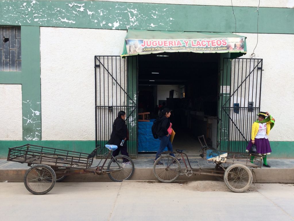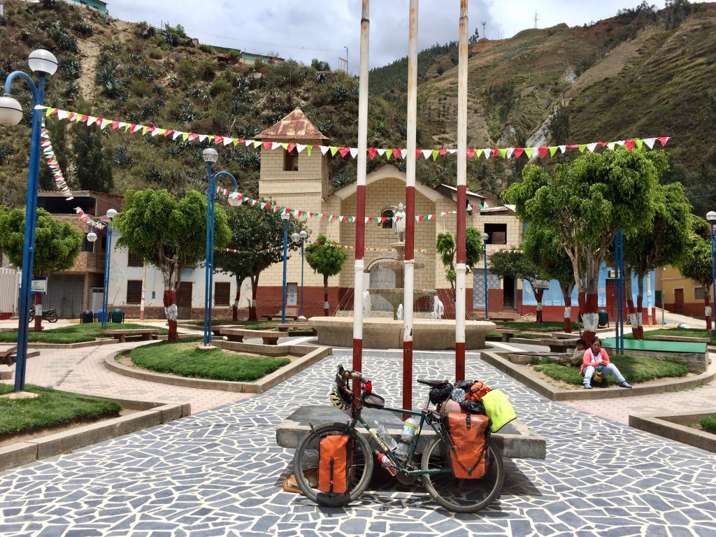 It was different being alone in the little town. I was nervous leaving my bike in the street while I assessed the hotel room and I felt the attention and stares from the locals much more intensely now they were all aimed at me, and only me, as I walked around. I found a new respect for those who travel like this alone. I noticed how the women here fancied an even more extravagant hat style than those of Huanuco. They didn’t only have one plastic flower in their bowler hat, but a whole bunch wrapped in glittering tinsel in all colours. It looked fantastic; unfortunately I was way too shy to ask any of them to photograph it, but I saw two young women clearly charming a young man with their looks.