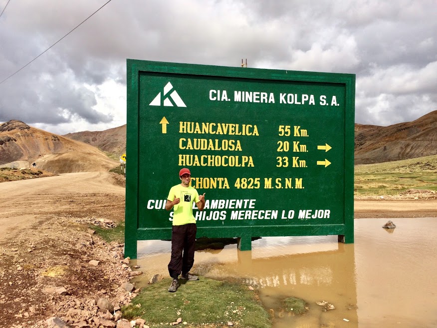Well, I don’t know if you really needed to know about that extraordinary 28-word chain, but I can certainly recommend the game as a good way to get up long climbs on bicycles. By the time I completed my chain of words we had less than a hundred metres of ascent to go, and the final stretch was itself improved by a huge herd of llamas that, for some reason, felt the need to run away from us. Being surrounded by hundreds of galloping camelids (it’s a word) was fun, as was watching them as they stopped and settled by a lake near the top of the pass. Being above 4,800 metres with no one around except for hundreds of funny-looking creatures (and Dea), colourful patterns on the peaks around us, was truly a special moment. A short while later we reached the summit of the pass. 4,825 metres above sea level according to the sign at the top, 4,845 according to Dea’s phone, but either way it was the highest point of the trip and our lives.