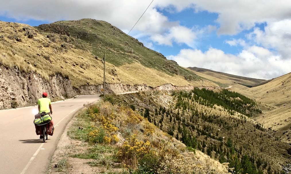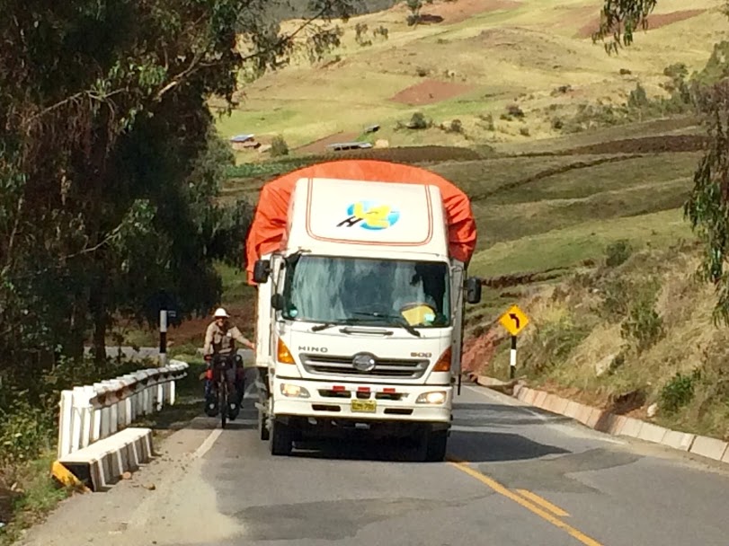 One highlight of this time was meeting another touring cyclist for the first time in Peru. We had expected to meet a lot more in South America, so it was nice to encounter one after so long. We first noticed him when we took a break on a long climb, and looked back down the switchbacks we had just ascended to see a truck moving slowly up towards us, with a cyclist gripping onto the back. We wondered if he might prefer to continue this free ride all the way to the top, rather than stop to chat with us, but as he got close and saw us he let go, gave a wave of thanks to the driver, who I’m quite sure had no idea he was there, and came over to us. He introduced himself as Ruslan, from Ukraine, and he was a big, tall, outgoing fellow with a lot to say. Over the course of five years he’d biked down through Africa, across Asia, and then down here from Alaska. But he did it six months at a time, then went back to his home in Odessa to work each summer. “My way is better,” he said, “because people remember you when you go back. If you go for years they forget you. They want photos, they want videos.” It turned out Ruslan was a bit of a celebrity in Ukraine for his travels, with 15,000 Instagram followers helping him gain sponsorship for his travels. He was certainly an interesting character, but he took exception to one thing. “I hate it when they call me gringo!” he protested, saying he got angry whenever a Peruvian shouted it out at him, that he would give them the finger, or stop and give them a good telling off. The frequent shouts of gringo could certainly get a little irritating, but the people in Peru were on the whole extremely friendly, and there would always come a wave or a smile from those that shouted out to us. Well, Ruslan said he planned to be in Cusco in four days to meet up with a friend. It would take us eight, but I guess it’s a little easier if you get towed up the hills. As we watched Ruslan go off ahead of us to blaze a trail, us following along behind, I said, “I guess we’ll get called gringo less now. But probably get fewer friendly waves too.”