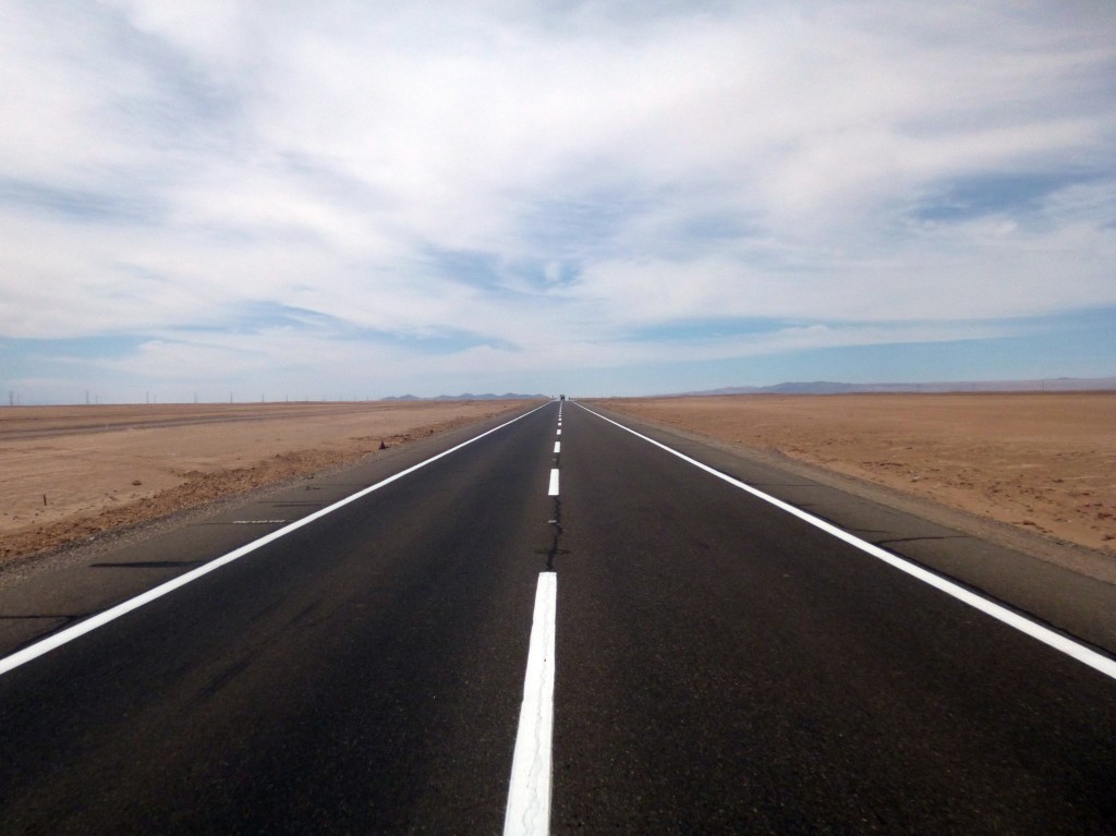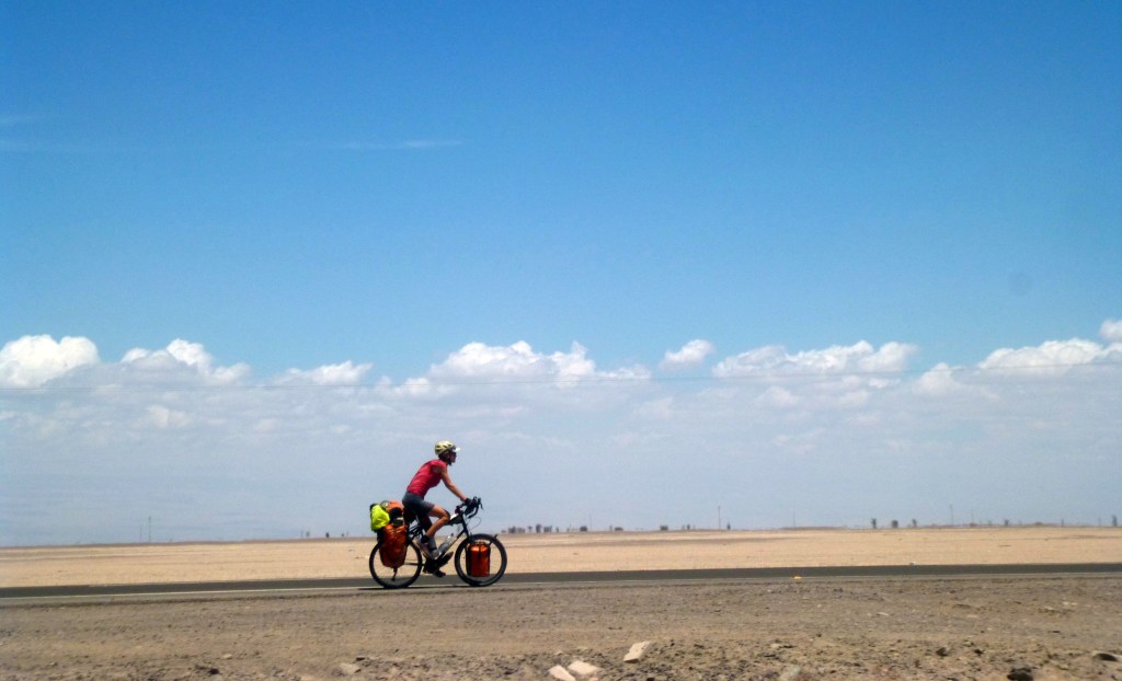 The Atacama desert is often described as the driest place on Earth, with some weather stations apparently having never recorded any rain. Before I arrived I had taken that information with a pinch of salt. Maybe there was just something wrong with the weather stations. Who made them? I mean, if I made a weather station I’m pretty sure it wouldn’t record any rain either. But the truth is once we got there it was obvious that the Atacama desert really was a very dry place indeed. There was absolutely nothing living out there most of the time. The land just stretched away endlessly in all directions, absolutely devoid of any life, devoid of any features to break up the emptiness. It was actually pretty awe-inspiring, but as you can imagine we were keen to make sure we had plenty of water with us. We carried us much as we could on our bikes heading out of Pozo Almonte, and we would need it, for it was very, very hot and very, very dry.