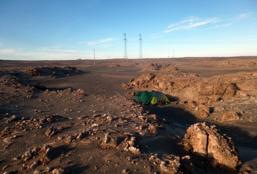 Around midday dark clouds began to form in the previously clear skies and we decided that it was time to stop, especially as we could hear thunder in the mountains. We found a decent spot and put up the tent, pegging it out better than we ever did before with heavy rocks, and digging channels in the dirt to divert flowing rainwater away from the tent. I even went to the effort of putting a metal pole up between some rocks a little away from the tent to try and keep lightning from hitting us. We’d done all we could to prepare for the wild afternoon storms, and got in the tent to await our fate. And we waited. And waited. It never rained a drop all afternoon.