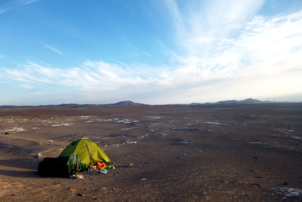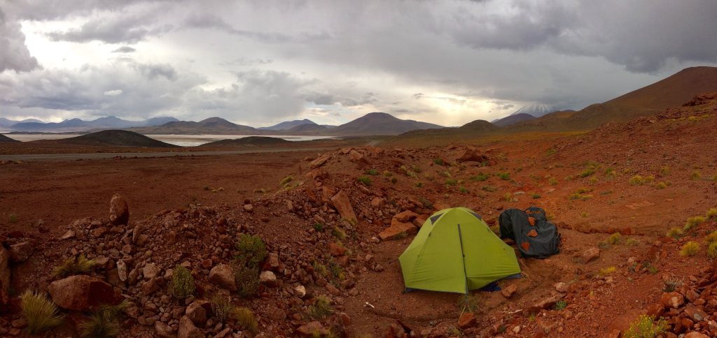 The problem was we didn’t have much alternative. There were no other ways over the mountains other than the main highway, but that would mean a long ride back, as well as the fact that that pass went even higher and would still involve the same problems of riding up through potential bad weather and needing to camp. Dea did seem to be considering taking a lift over, but there was so little traffic and for sure she hadn’t cycled all this way to give up so close to the end. So instead we came up with a plan to ride a bit out of Socaire to camp and then start very early the next morning. The weather seemed to always follow a similar pattern, of being sunny and clear in the mornings and then becoming wet and wild in the afternoon. So we’d cycle as far as we could by one or two o’clock, and then find the best possible place to shelter our tent and get in it before the rains came, then repeat the trick of an early start the next morning.
