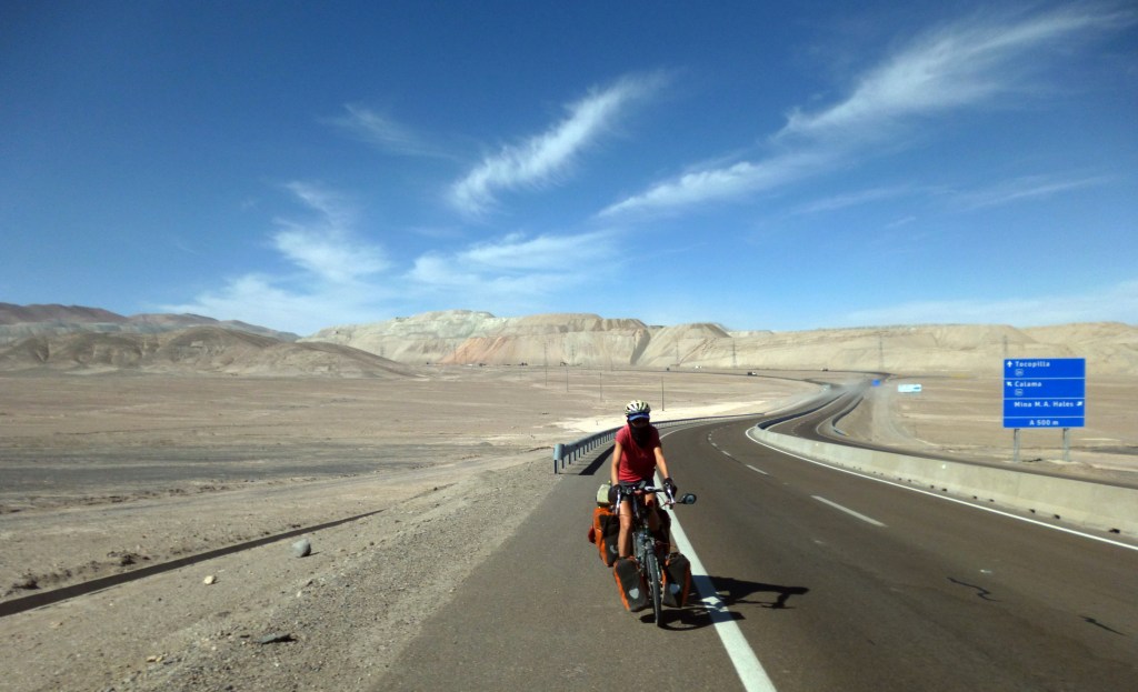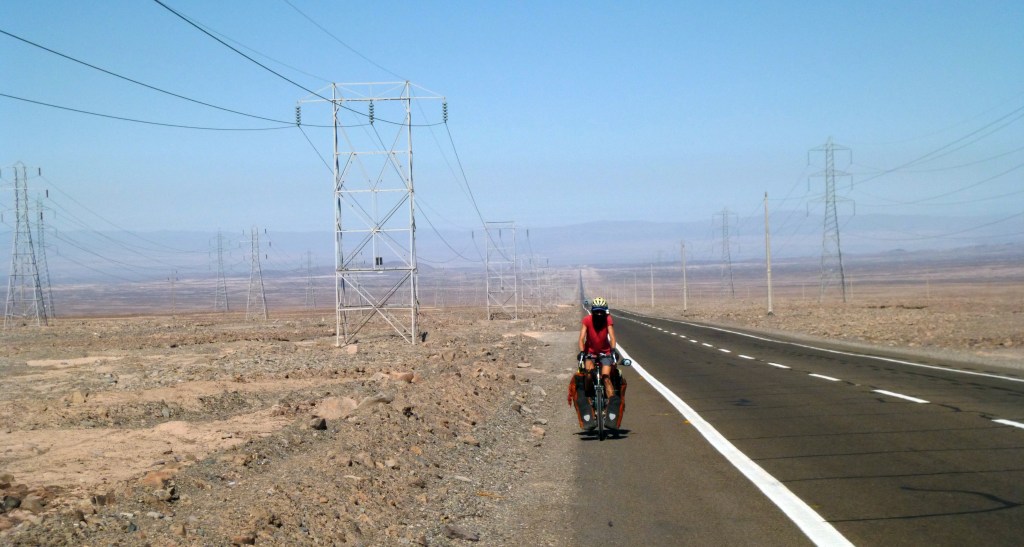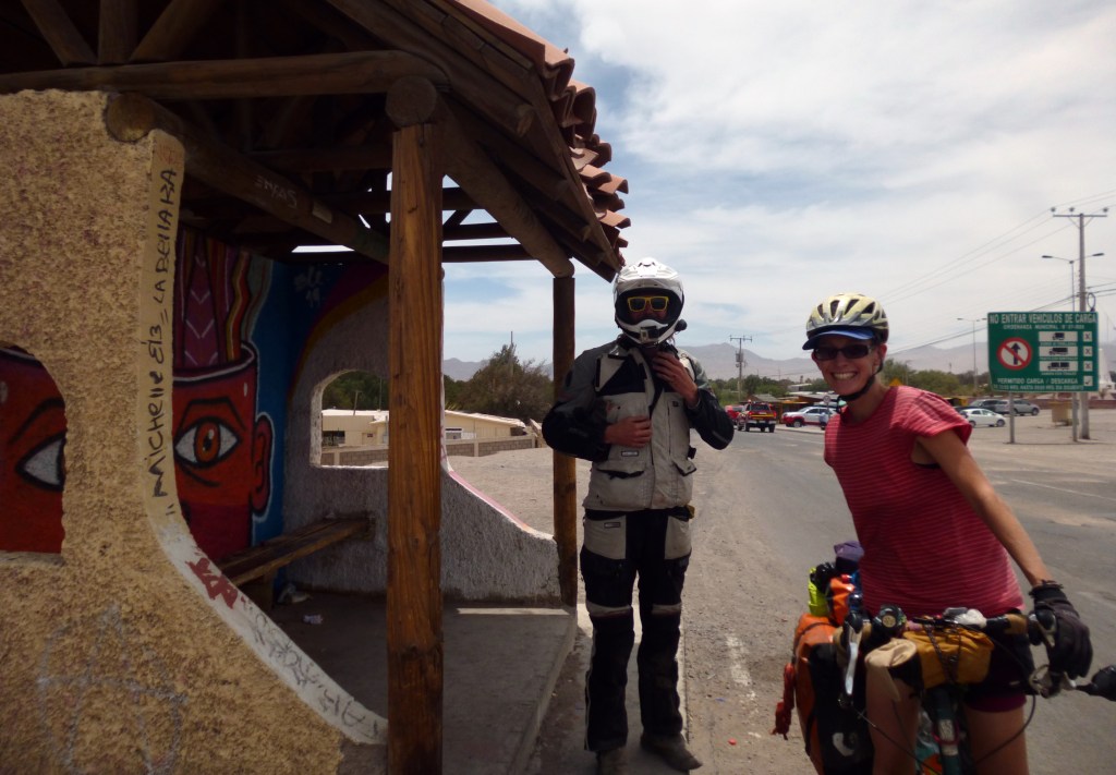 I think we both really enjoyed our time in the Atacama, as we did in all the deserts we passed through on our journey. The flat cycling made for some fast progress south, and it was certainly a nice change from the wet mountains. And there is something awesome about the big empty spaces of deserts that we both love, even when they are being traversed, as in this case, on a fairly busy highway. It’s just an incredible feeling to be surrounded by all that nothingness, a sense of achievement in plodding on through it on a bicycle.