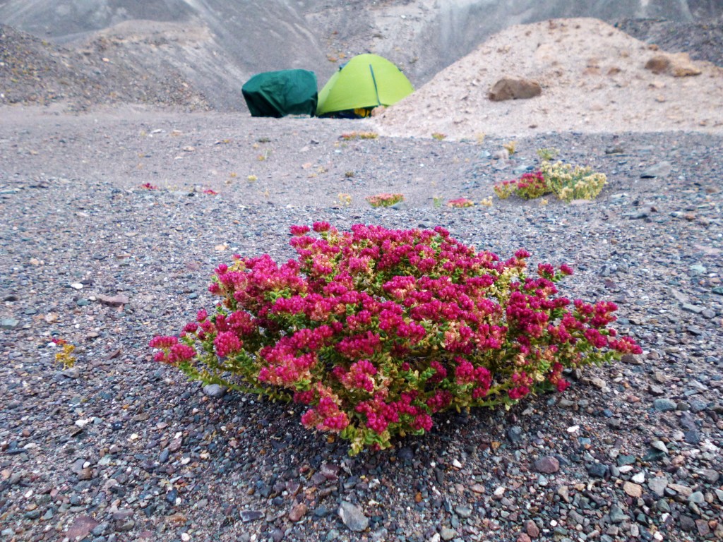 It seemed like a good plan, but involved riding the first little bit in light rain that still lingered after the worst of the storm had passed through. We were in a very remote location, and the mountains ahead looked dark and ominous. One single car came down the road, an American tourist who couldn’t believe we were going up there on our bikes. She told us that it was raining hard higher up there, hailing even, as it seemed to do every afternoon. We stopped soon after and made camp.
