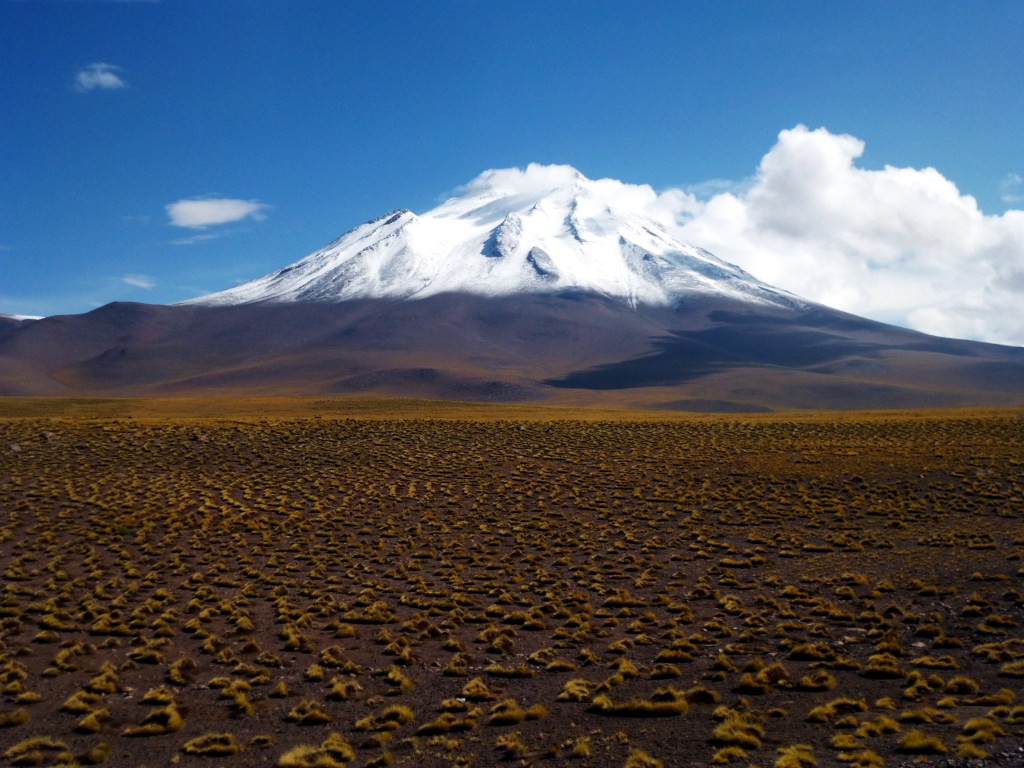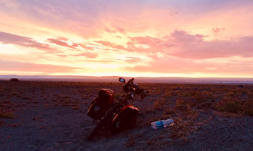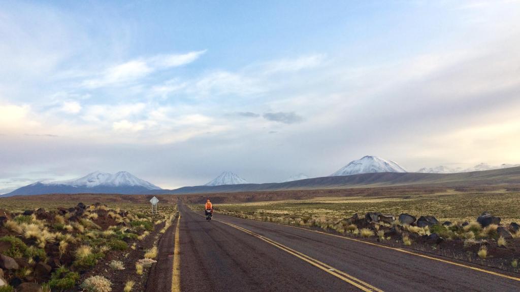 Dea and I rode on together the next day, choosing to take the more tricky southern pass from here into Argentina. Jonas preferred to take the more northern main highway because it didn’t turn to gravel on the Argentinian side and the weather was potentially getting bad. We hardcore cyclists don’t worry about things like that, though. And the first day things went pretty okay, with a flat southbound road taking us across more desert, but desert with scrubs and a bit of green on it, and beautiful snowy volcanoes as a backdrop. Things got a bit tricky in the afternoon when a big gale blew in and a sandstorm was whipped up, but luckily we were taking a break in the rare town of Toconao at the time and escaped into a restaurant. We considered stopping for the night, but the only hotel was too pricey, and once the wind died down we actually had an extremely pleasant cycle that evening. The road was almost completely empty, and the landscape was just incredible in that last hour before sunset. We made a fantastic campsite out in the middle of nowhere and agreed that this really was the life.
