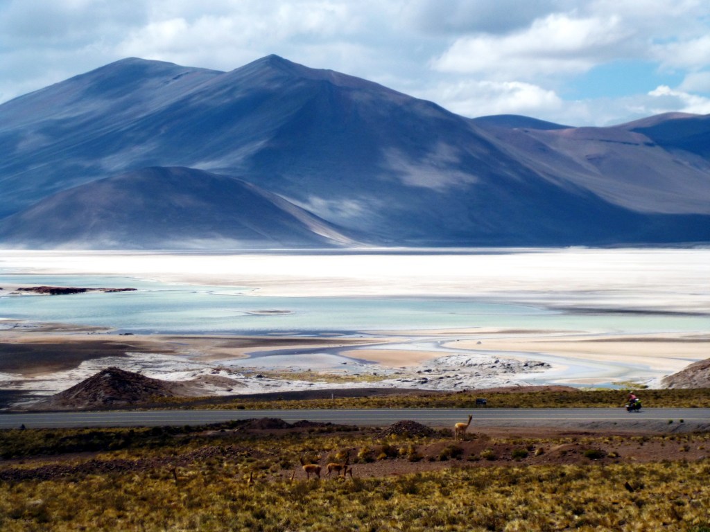 It did rain a bit overnight, though, so I slept badly, and felt tired when the alarm went off at five the next morning. We wanted to make another early start to get over the border and into Argentina, so we once again were on the bikes before the sun came up. But as it grew light we reached another salt lake, and this one just looked ridiculous in such light. We went down to the edge and stared out at the wondrous sight. The mountains behind the lake made perfect reflections and all was silent except for a few birds singing and I once again could not believe how beautiful this world can be sometimes.